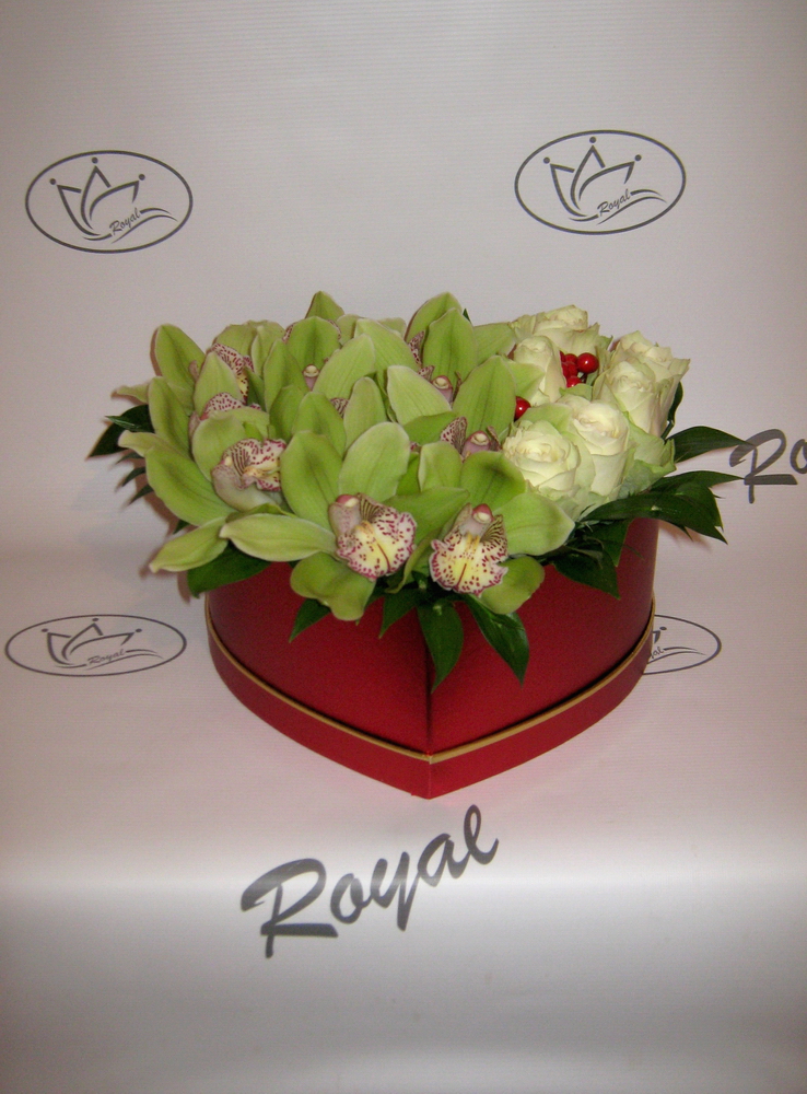 Box of flowers srce sa ružom i orhidejom 433.