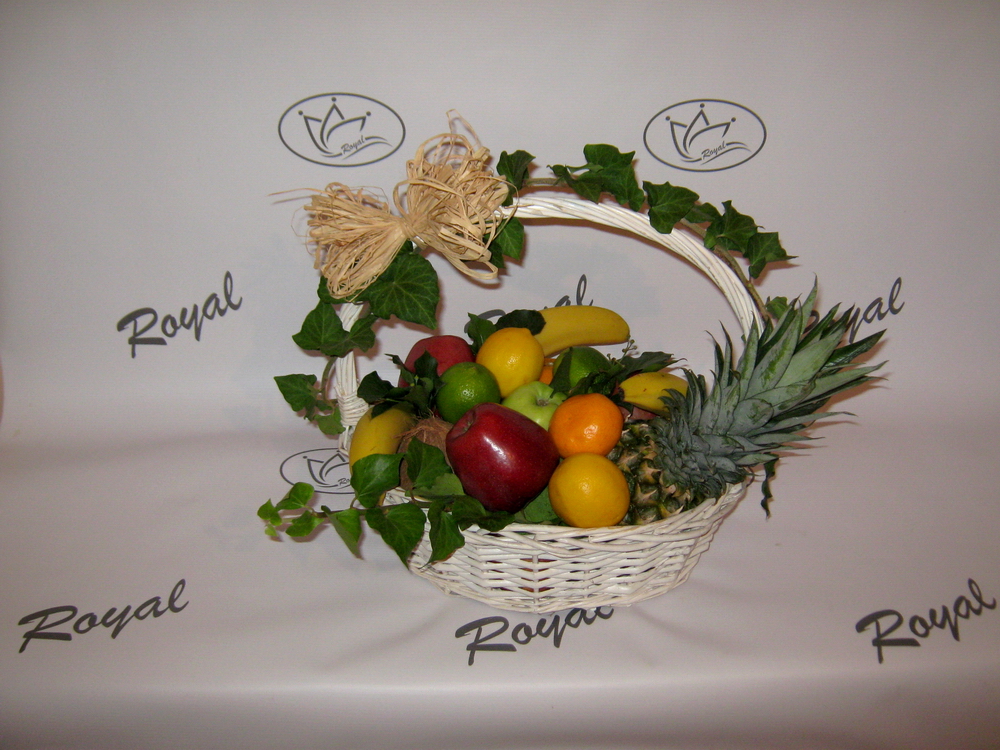 Voćni aranžman: ananas, banana, limun, mandarina, jabuka, limeta, pomorandža i kokos.